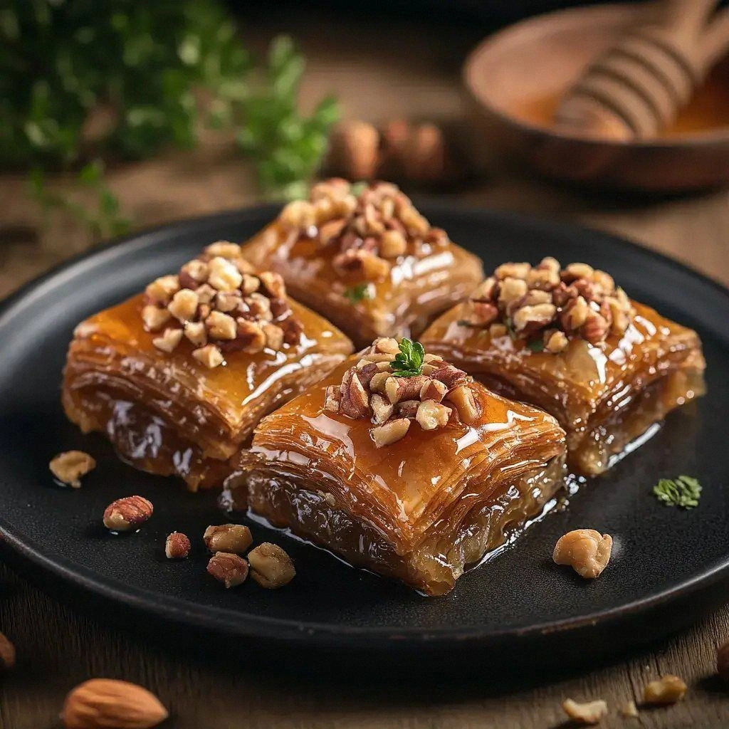 Store baklava in an airtight container at room temperature for up to 5 days. The layers will stay crisp, and the honey glaze will retain its shine. If you notice the glaze drying, lightly mist the top with water and re‑seal the container.