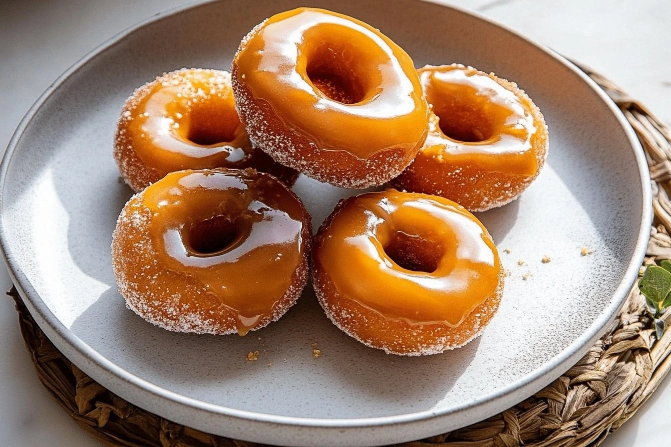 After the glaze has set, drizzle melted dark chocolate over the donuts for a decadent finish. The chocolate adds a bittersweet contrast to the sweet caramel. This variation is a crowd‑pleaser at parties or as a dessert for chocolate lovers. The glossy chocolate finish looks stunning.