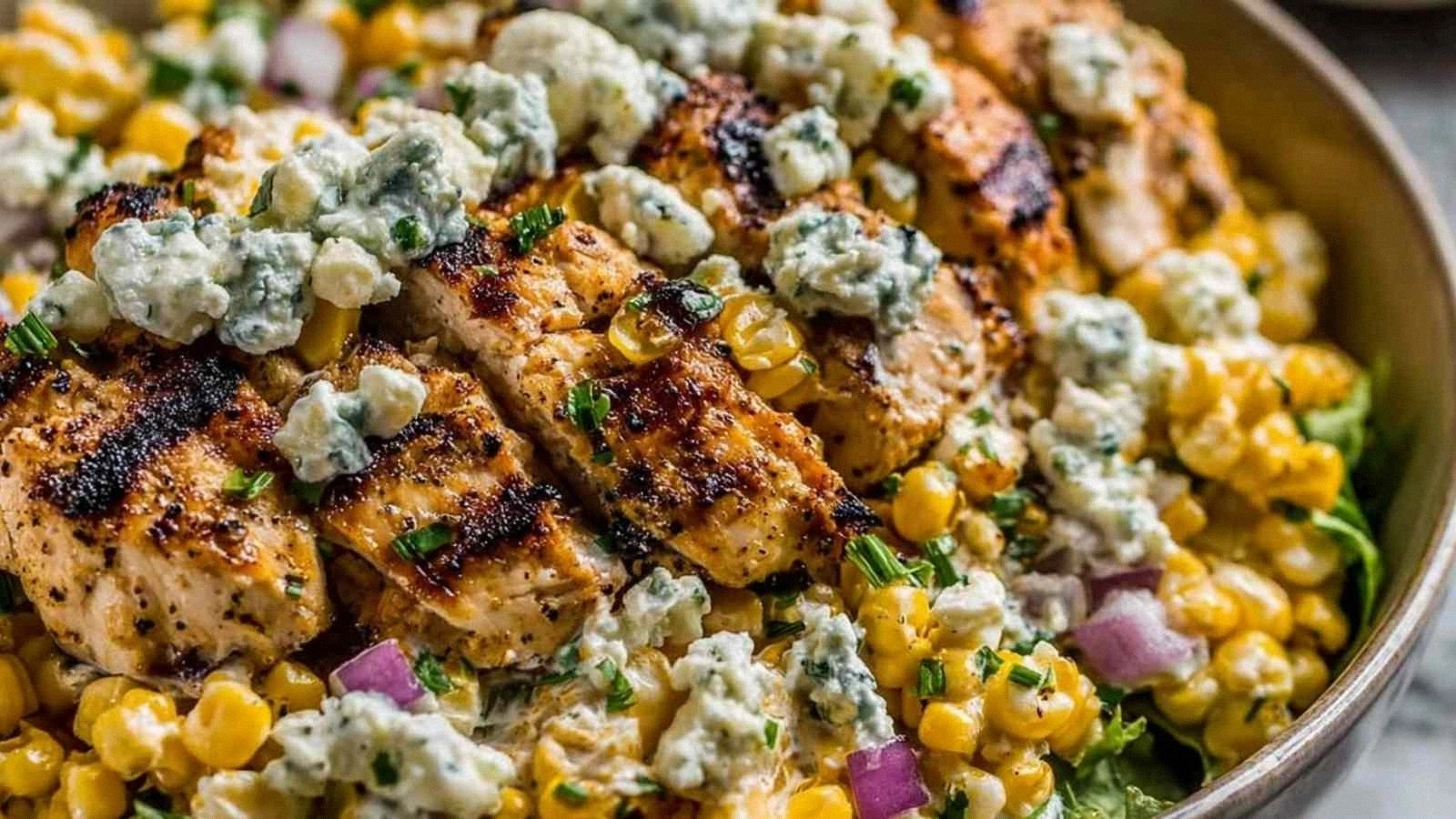 Let the chicken and corn rest for 5 minutes after cooking. This allows the juices to redistribute, ensuring each bite is moist and flavorful. While it rests, you can finish whisking the dressing and prepping the final ingredients. This small pause makes a big difference in overall texture.