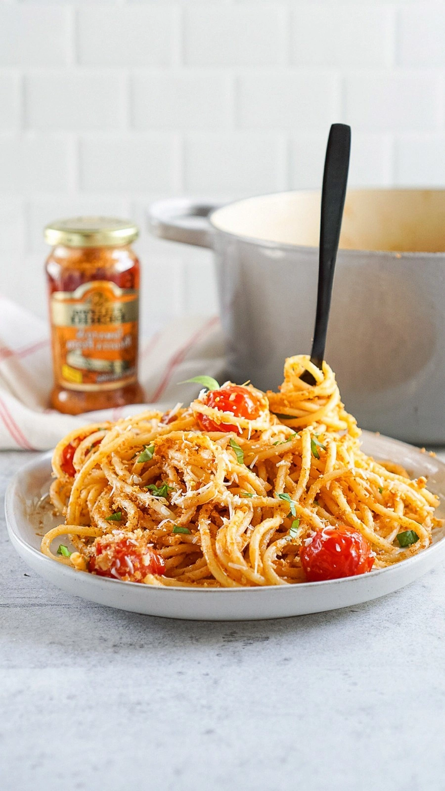 - Flavor: The tomato ricotta pesto delivers a rich, velvety texture that coats every strand of bucatini, while the cherry tomatoes add a fresh burst of juiciness. The balsamic vinegar gives a subtle sweetness that balances the creaminess, and the lemon zest lifts the entire dish. This harmony of sweet, savory, and bright notes sets it apart from standard pesto pastas.